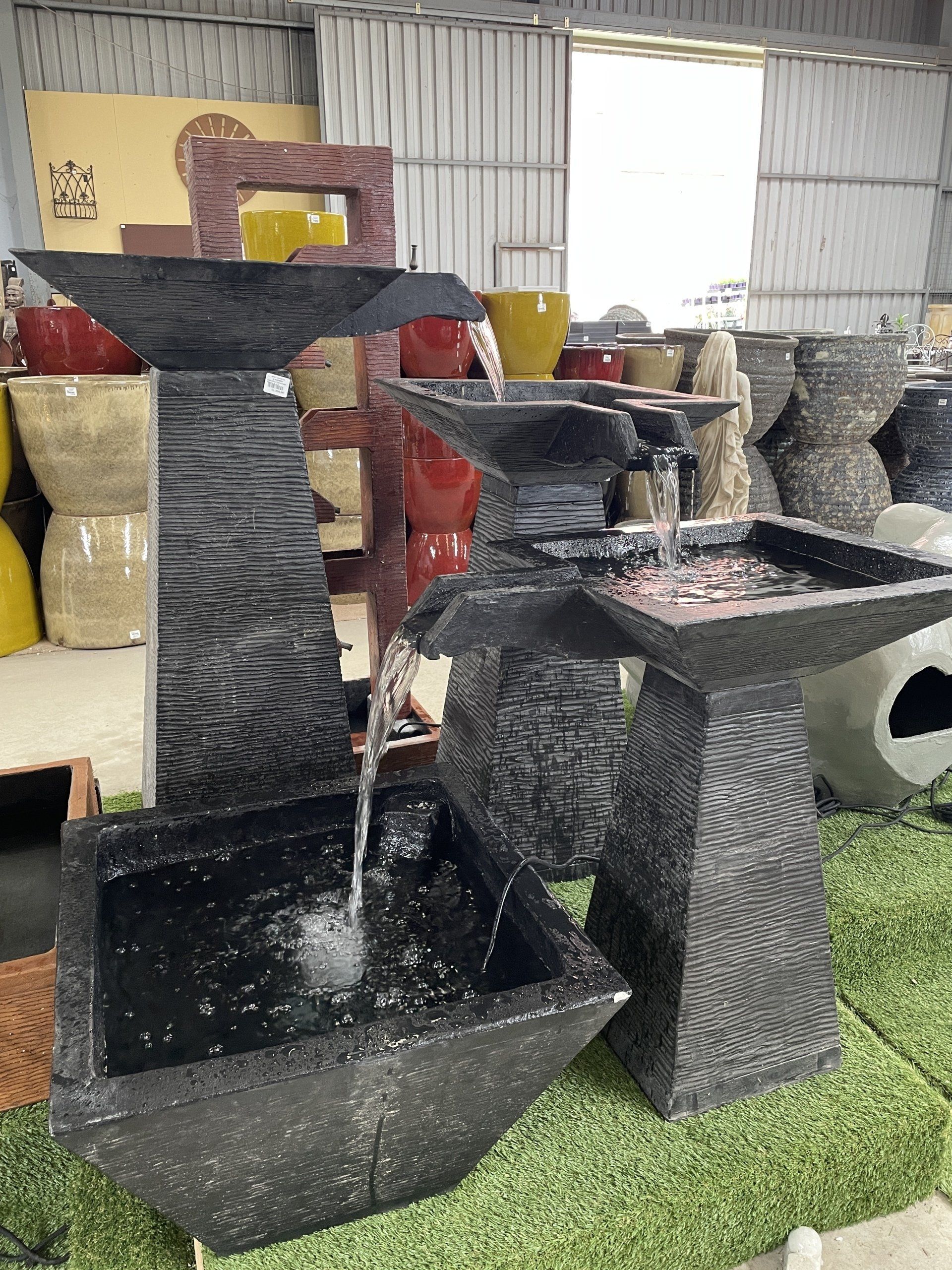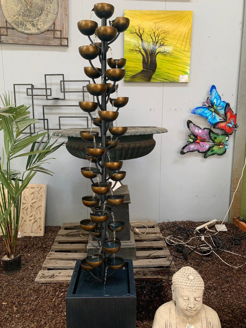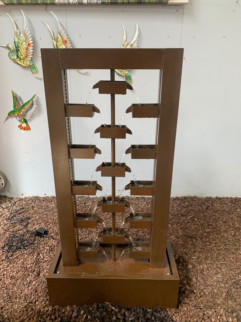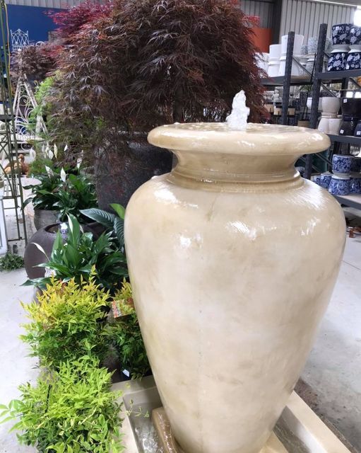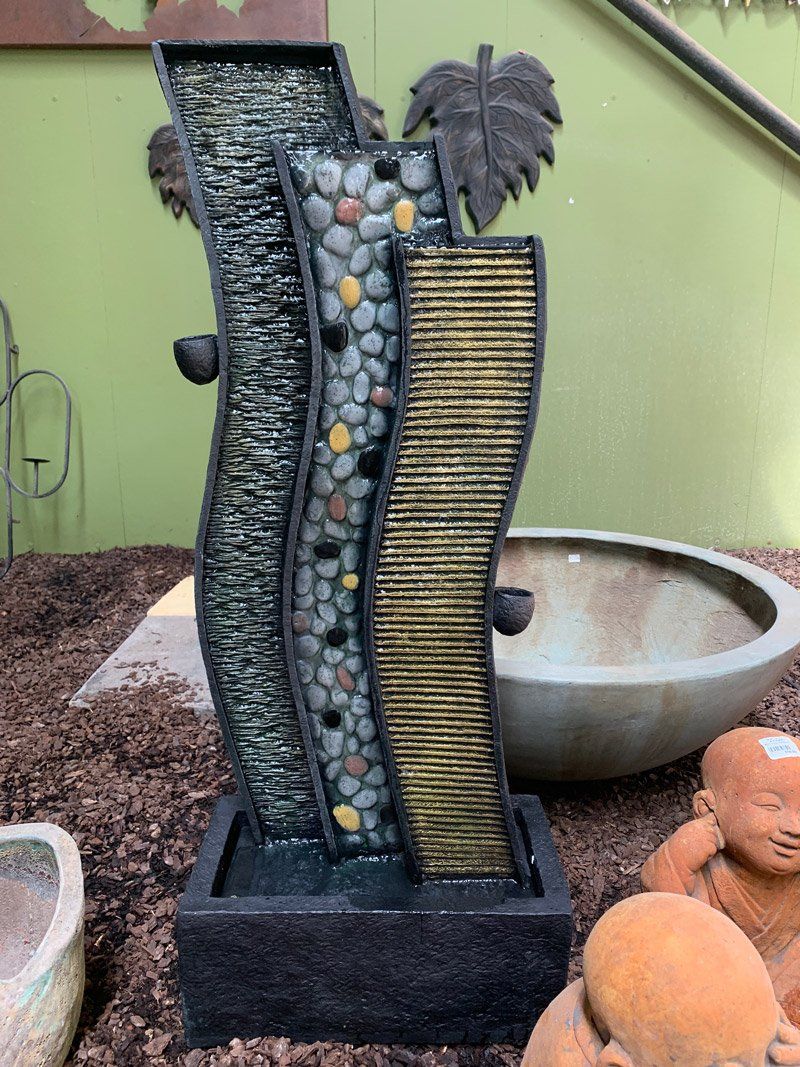 to life through movement and sound. From cascading waterfalls to magnificent modern art pieces, Spot On Pots and Nursery offers the perfect water element for every space and for every desired ambience. Our water feature displays are forever changing. See how you can transform your garden into something spectacular with our selection of water features and supplies. Request a custom-made, one of a kind water feature, crafted from one of our pots, if you desire.