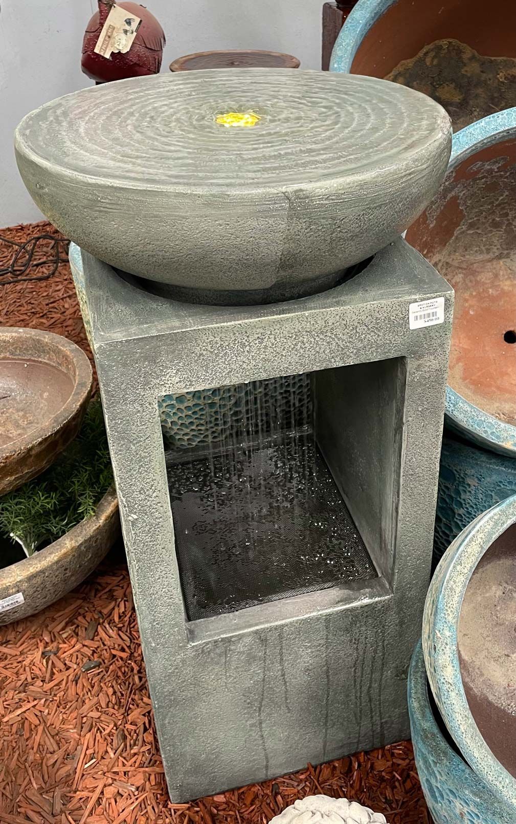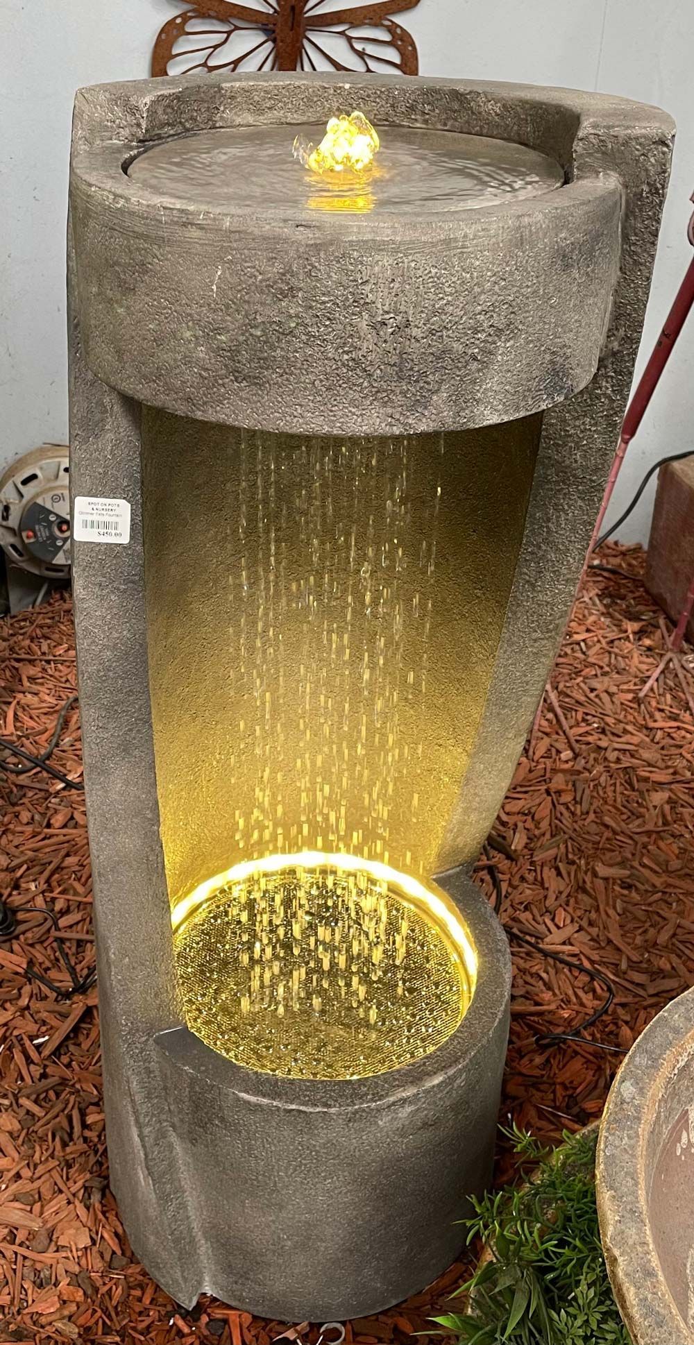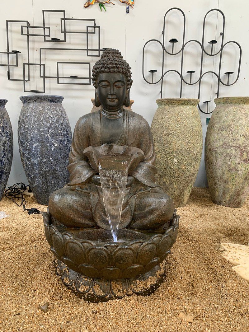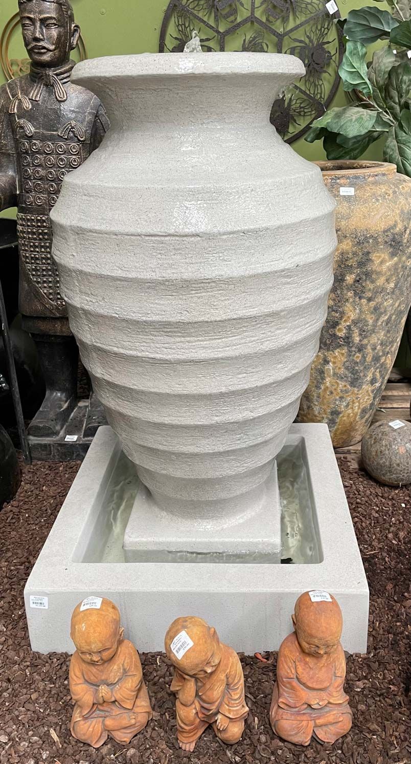 to life through movement and sound. From cascading waterfalls to magnificent modern art pieces, Spot On Pots and Nursery offers the perfect water element for every space and for every desired ambience. Our water feature displays are forever changing. See how you can transform your garden into something spectacular with our selection of water features and supplies. Request a custom-made, one of a kind water feature, crafted from one of our pots, if you desire.